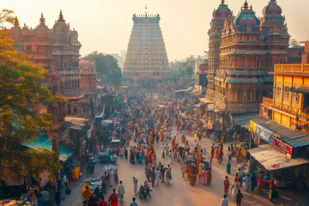 Temple city of India, rich in ancient architecture, vibrant culture, and sacred heritage sites.