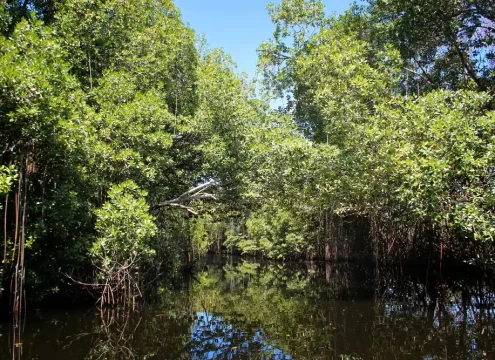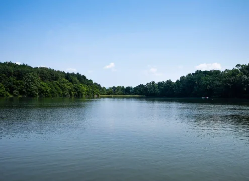 Scenic lake with dolphins, migratory birds, and serene boat rides.